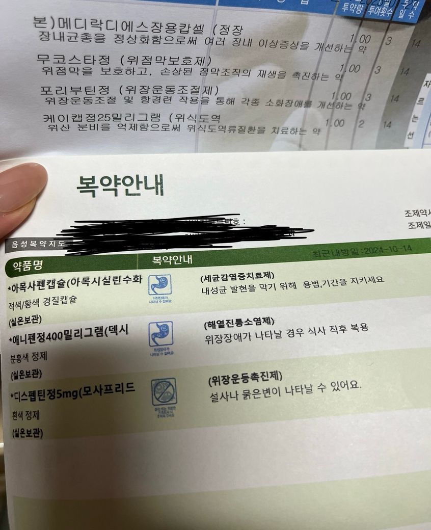 내과에서 위장약을 처방받아 먹고있어요