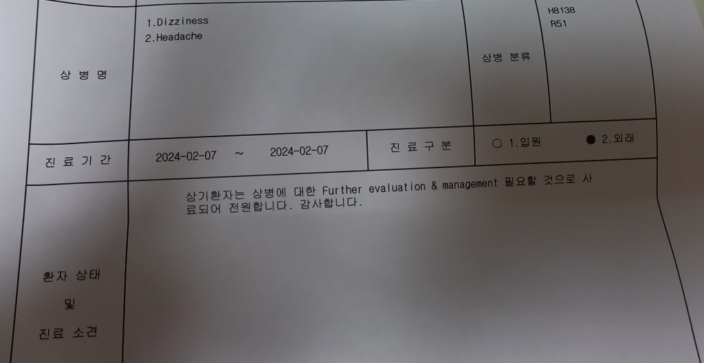 안녕하세요 19세 여자입니다. 몇달전부터 시작됐었던 통증인데요. 가만히 있으면 머리가 어지럽고 눈이 빠질듯이 쏟아지는 느낌이고 움직이면 왼쪽 관자놀이가 아프면서 어지럽습니다. 눈이 빠질듯한 증상도 지속되구요. 관자놀이에서 왼쪽 미간으로 통증이 전이되기도 합니다. 가까운 동네 이비인후과에 가봤더니 본인들도 잘 모른다면서 큰 병원에 가보는게 좋겠다고 의사 소견서를 써주셨습니다. 이석증이 아니냐 질문을 드렸는데 지금 증상으로 봐서는 이석증은 아닌 것 같다고 하셨습니다. 부모님께 말씀을 드렸더니 아버지께서 "꾀병이다, 네가 공부하기 싫어서 만들어낸 가상의 병이다" 이러셔서 아버지 앞에서는 이야기를 못하고 여기에 이야기해봅니다. 제 예상으로는 여러가지 질병들이 모여서 나타난 병 같은데 무슨병인지 아시는 선생님들이 계시다면 사람한명 살린다 치시고 부디 도와주세요!! 사진은 의사선생님께서 써주신 제 소견서입니다.