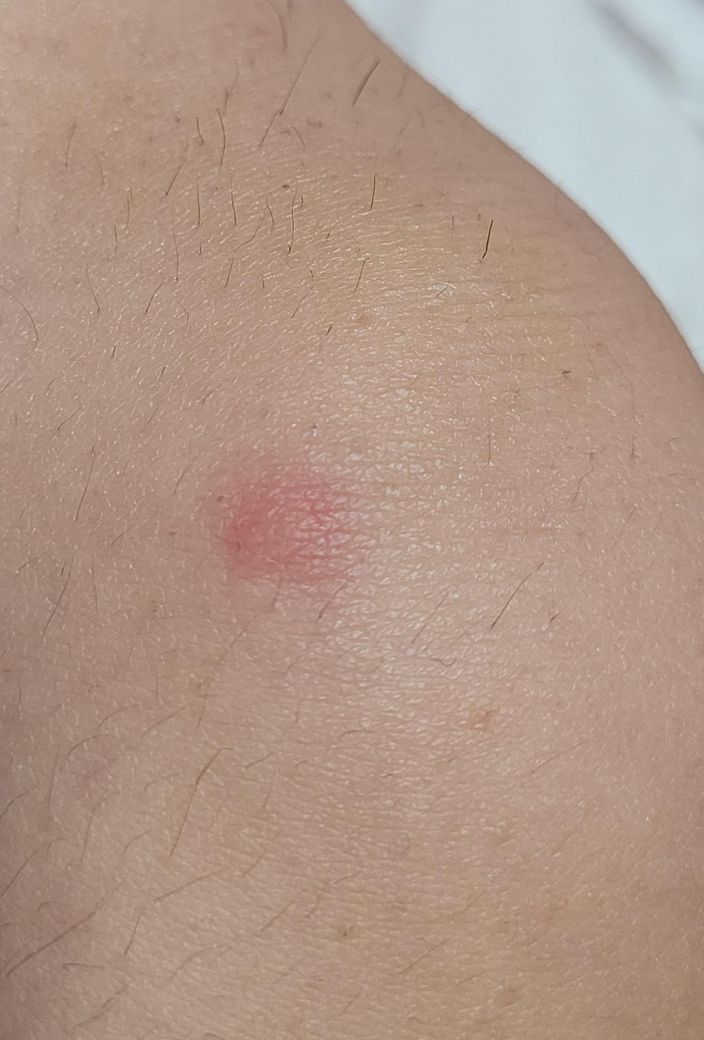 사진상으로 보기에는 모기나 개미에 물린 자국인것 같습니다 버물리 연고 바르시면 나아지세요
