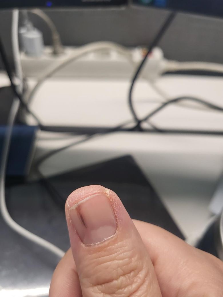 꽤나 지났는데 손톱깍다보면 알아서 없어질줄알았더니 계속 보이네요 손톱깍다보면 검은줄밑에 머가더 있긴하드라구요 혹시 흑색종일까요?ㅠ