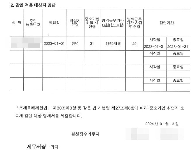 현재회사도 감면대상이 맞다면 담당자에게 해당 자료에 대해서 문의해보셔서 감면 신청을 하시면 됩니다.