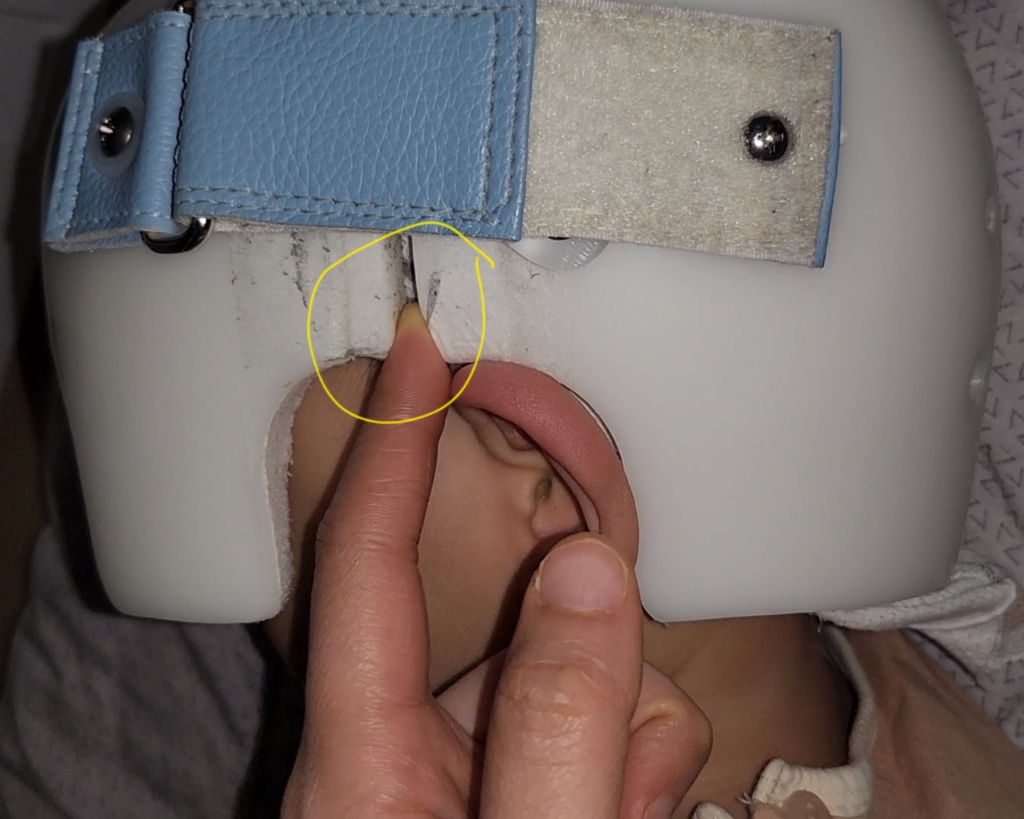 두상교정 헬멧에 귀가 끼여있었어요. 괜찮을까요?
