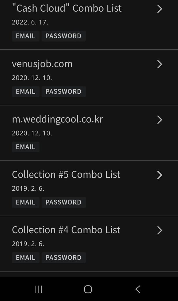 구글에 들어가서 다크웹 유출/해킹 확인해보니 Cash Cloud" Combo List 이게 뭔가요?