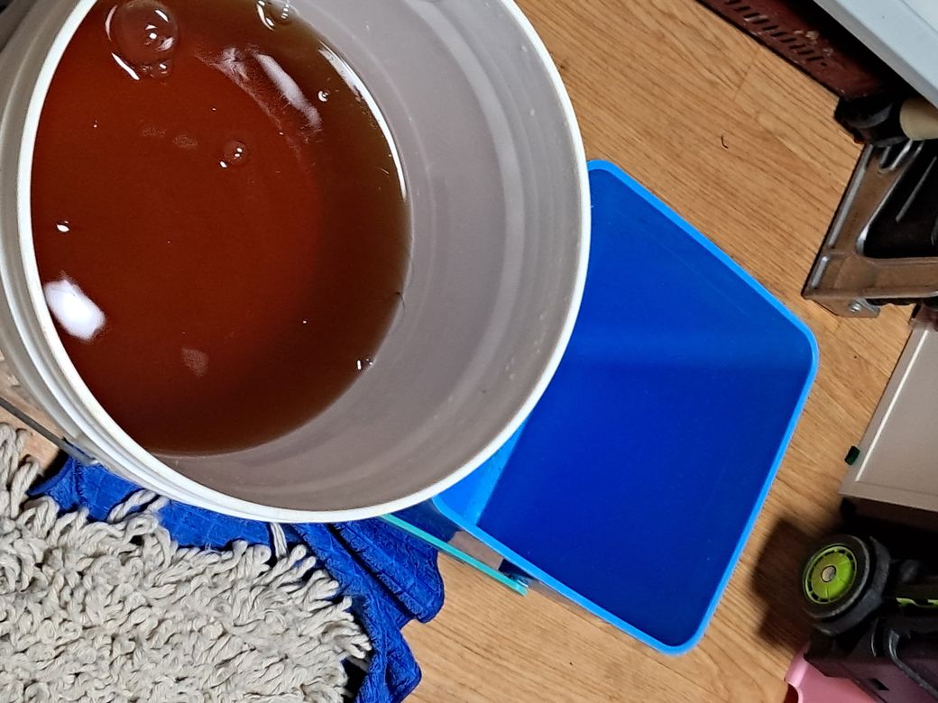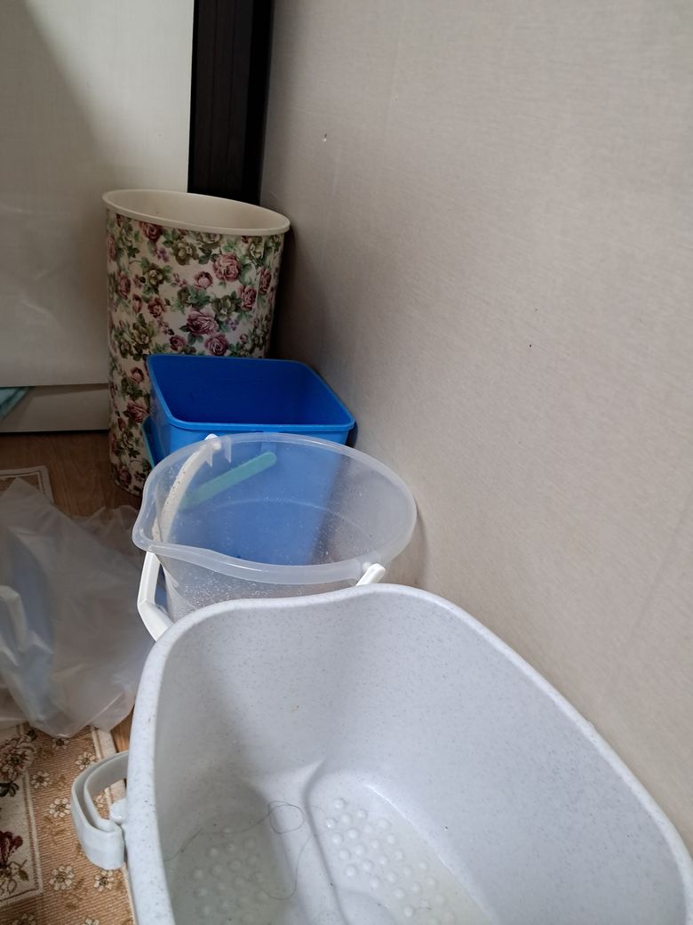 급한 나머지 양동이 몇개씩 갖고와 물이 떨어지는 곳에