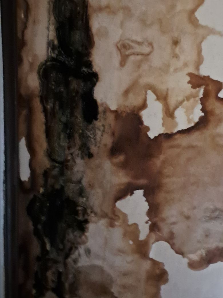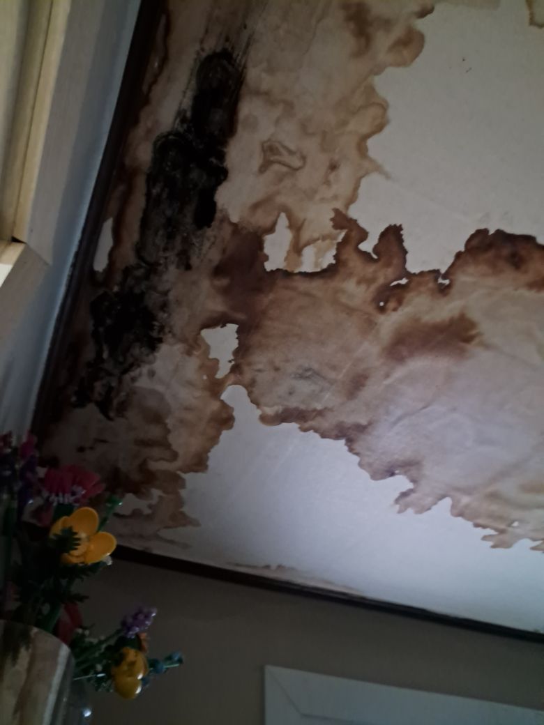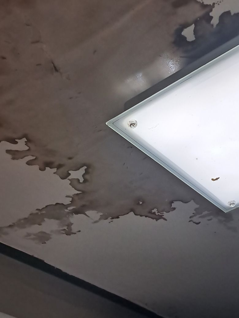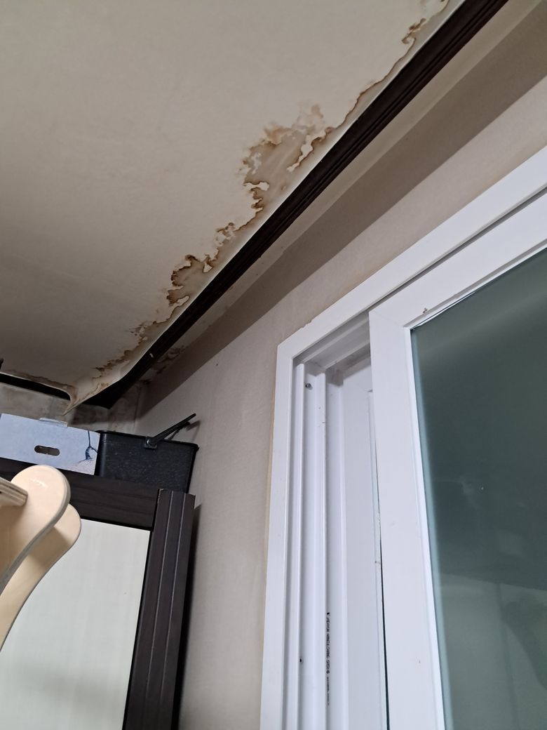 천정 상태를 보니 지속적으로 오래 흘러내는 모양 같습니다.