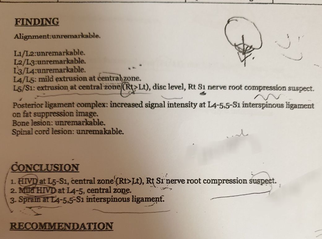 suspect 부분은 신경압박에 대한 부분으로 추간판 탈출증이 진단되는 것에는 문제가 없어보이나,