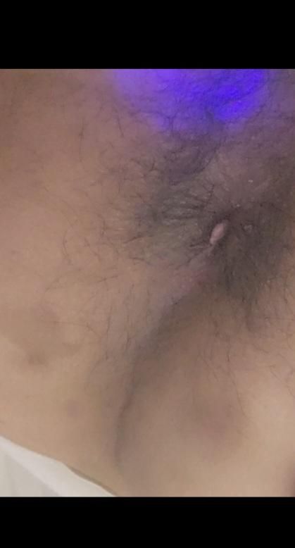 거의 최대로 이완하고 찍은것인데 누워있을때 6시 방향 겉보기엔 항문 정중앙에 뭔가있어요.