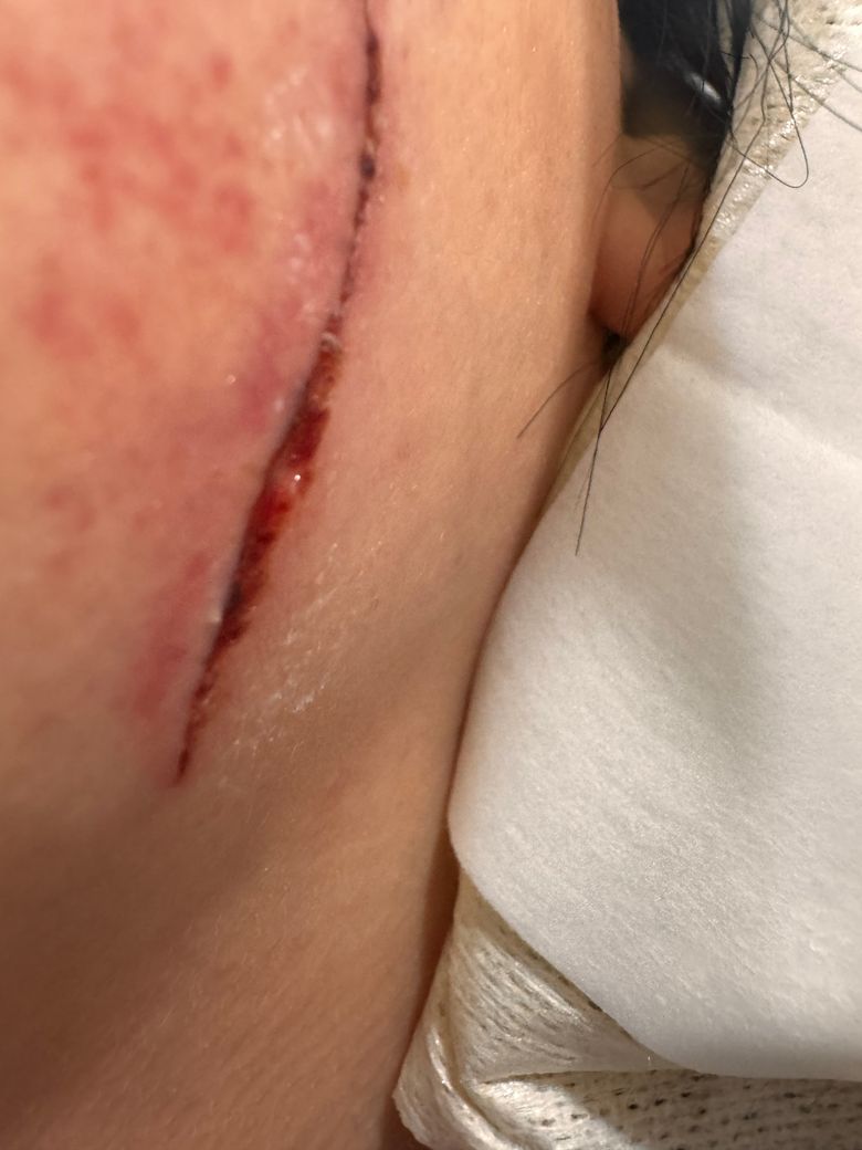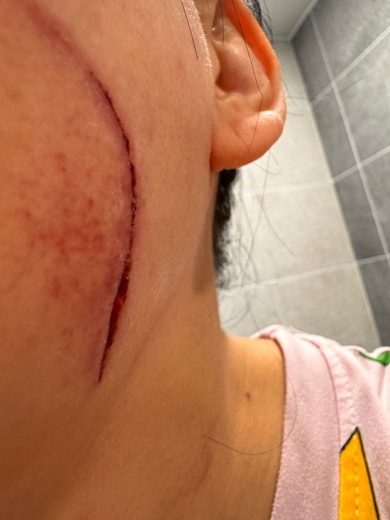 양꼬치 먹다가 꼬챙이에 긁힘!!병원에서 봉합을 안해도 되는지 선생님들께 상의 드려 봅니다 ㅠㅡㅠ 상처가 벌어지지는 않았어요!