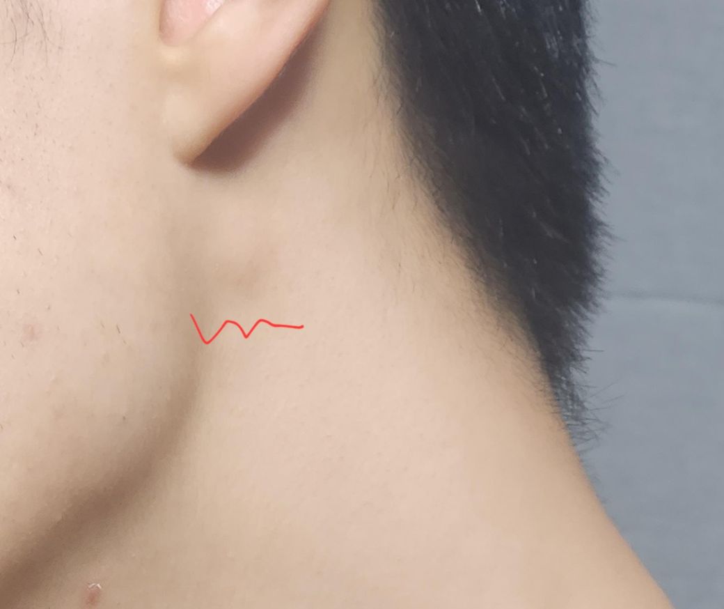 약 1-2주일 전에 갑자기 오른쪽 귓볼 밑과 턱 사이에 볼록한게 생겼습니다. 외관으로 봤을 때에는 티가 잘 나지 않지만, 고개를 왼쪽으로 돌리면 보여서 알았습니다.