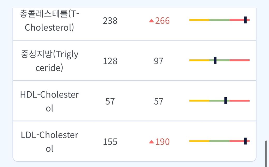 종전(1년전)결과보다 총콜레스테롤과 LDL수치가 많이 높아졌어요ㅠㅠ