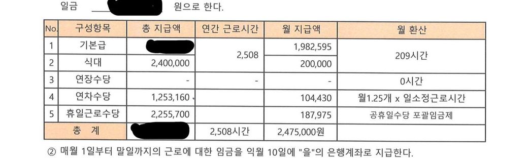 취업규칙 내용과 근로계약서 첨부드립니다! (연차수당 포함)