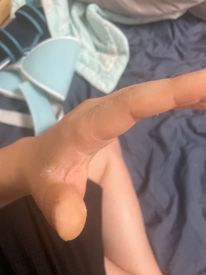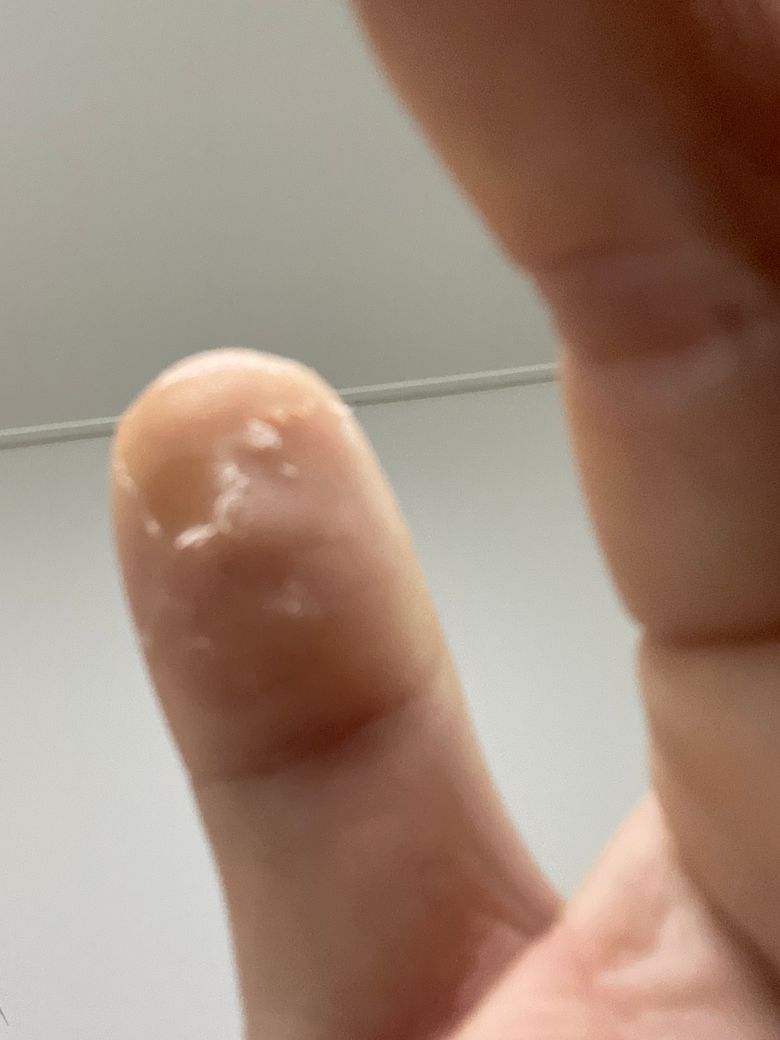 이상해보이는건 손 껍질이 벗겨 지고 손바닥이 누렇고 손끝이 누런 색으로 변했습니다. (손끝과 손바닥이 마취된것이나 굳은살배긴듯 감각이 무뎌요)