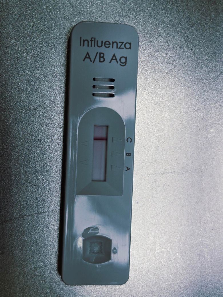 1. 사진으로 보기에 A형 독감 쪽이 굉장히 희미하게 양성으로 보입니다. 독감을 의심해볼 필요가 있어 보입니다.