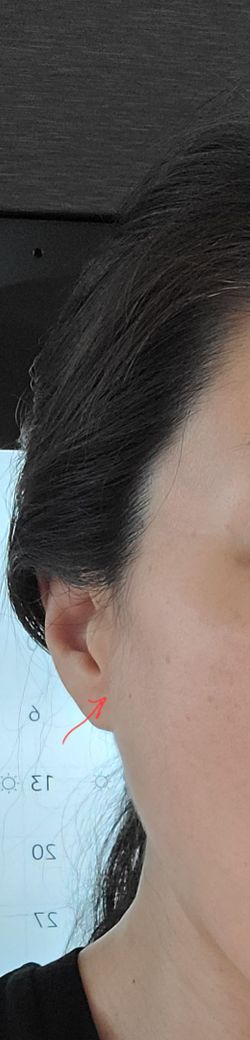 사진처럼 입을 열때 통증있는 부위 오른쪽 귓볼앞에 뼈가 돌출이되고 입을크게 벌릴수 없어요. 오른쪽 튀어나온부위 근처 누르면 통증도있고 고기를 씹을수 없어요.