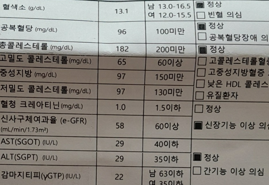 당뇨라던가 고혈압 같이 신장기능에 영향을 줄 수 있는 질환이 있다면 기능이 이렇게 떨어질 수 있습니다.