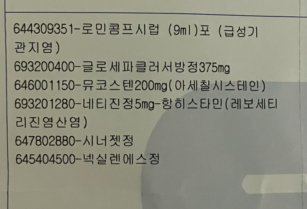 처방받은 약물 중 해열 진통제가 포함되어 있습니다. 추가적으로 타이레놀을 복용해볼 수 있겠습니다.