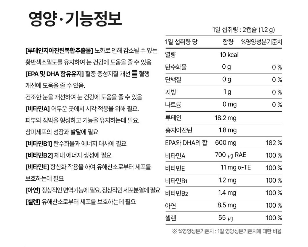 종합하면 비타민c, 코큐텐, 오메가3,비타민D, 루테인 지아잔틴,밀크씨슬을 드시고 계신 것으로 보입니다.