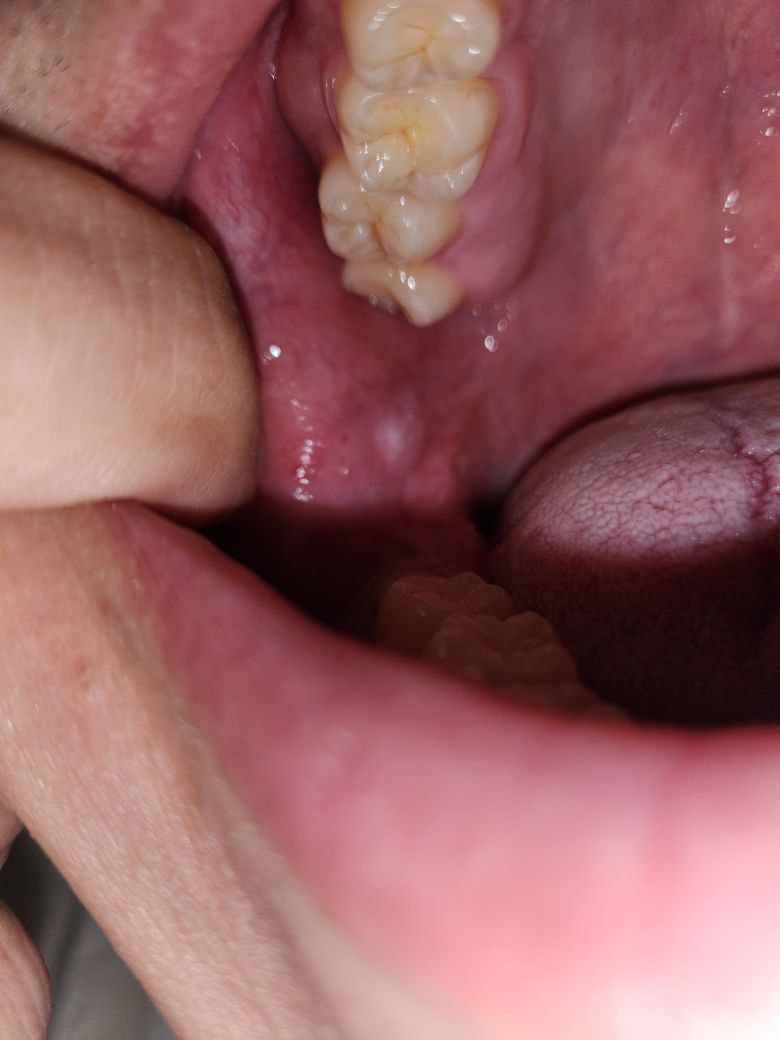 사진으로 보기엔 악성종양의 양상은 아닙니다만 어디까지나 이건 눈으로 간단하게 보는 것이고 보다 정확한 진단을 위해서는 구강내과나 외과 등에서 생검을 진행해봐야합니다