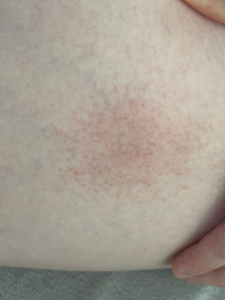 집먼지 진드기에 의한 알레르기 반응은 보통 호흡기증상을 유발하거나, 전신적인 증상을 유발하게 되므로 해당 병변은 접촉성 두드러기 등을 먼저 의심하게 될 것 같습니다. 가까운 피부과를 방문해보시기 바랍니다.