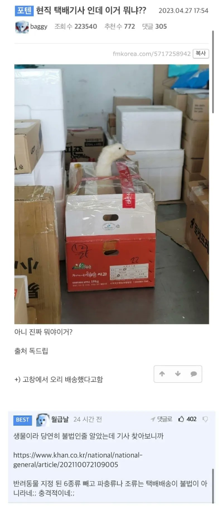 위 내용으로 봐선 살아있는 오리 배송도 괜찮은 것으로 보이는데 정말 살아있는 오리를 택배로 보낼 수 있나요?