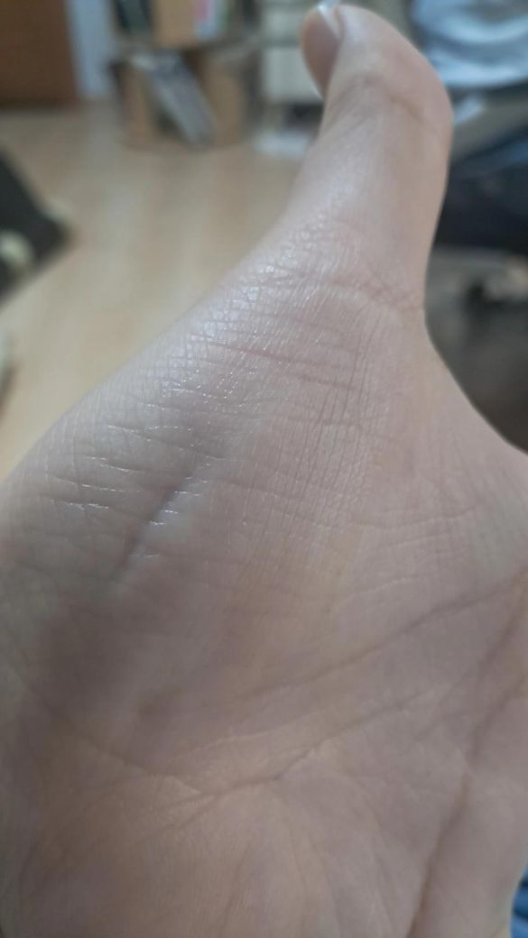 손바닥 왼쪽을 쫙 피면 저렇게 흠집처럼 자국이 생겨요 오른손은 쫙 펴도 저렇게 파이지 않던데 왜 저러는 걸까요 근육튕김도 있는데 근위축인 건가요 아직 고등학생인데ㅠㅠ루게릭이면 어떡하죠 첫번째가 왼쪽 두번째가 오른손입니다