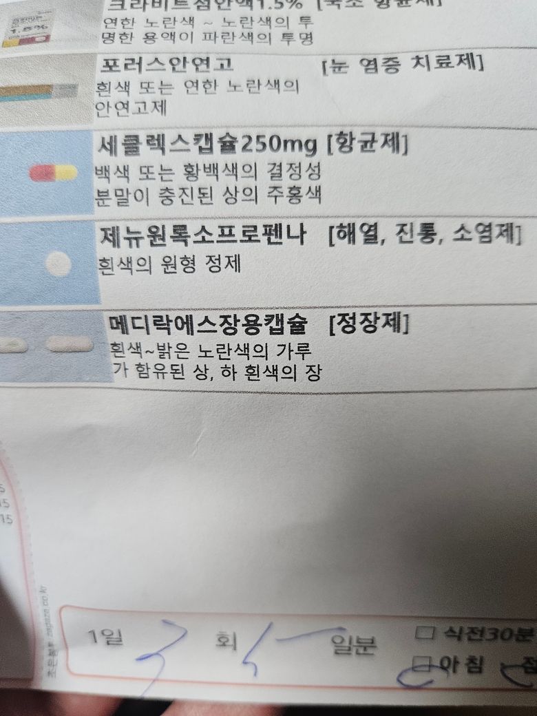 어제 저녁 식후 위와같은 처방약을 복용했고