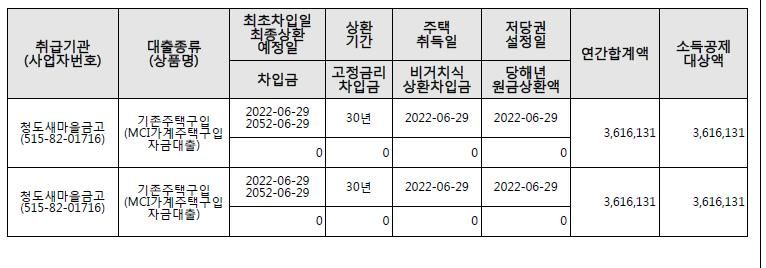 연말정산 아래와 같이 저당 차입금이 발생하였으면 2군데 합산하여 공제 적용하면 되는 건가요?