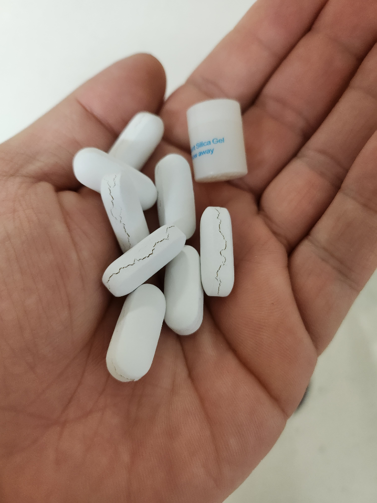 병에 실리카겔이 포함된 상태로 습도가 높지 않은 곳에 잘 보관한 상태에서 그러한 일을 겪으셨으면, 이는 제조상의 문제라고 보실 수 있습니다. 즉 제품의 장기간 보관안정성에 대해 결함이 있다는 의미로, 해당 건강기능식품을 제조한 제조회사에 컴플레인을 걸 수 있는 사유라고 보여집니다. 제품을 구매한 약국 또는 구매처에 해당 내용을 설명하도록 하시고, 그에 맞게 적절히 환불이나 교환 등 적절한 대처를 받을 수 있는 부분이라 여겨집니다.