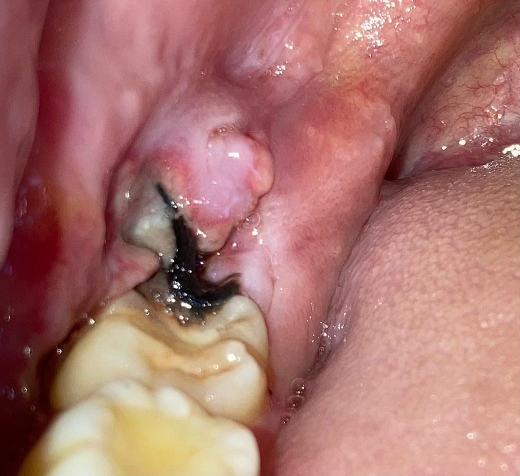 사랑니 발치 후에 염증이 생기면 극심한 통증이 있습니다. 현재 상태도 염증이 의심되기는 합니다.