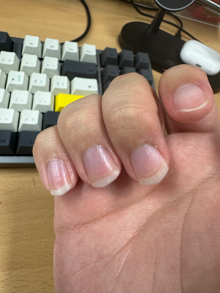 사진을 통해서 보았을 때에 딱히 문제가 있어 보이는 부분이 있어 보이지는 않습니다. 그렇지만 손톱이 있는 부위가 과하게 파랗거나 보라색으로 보이면 말초 순환이 잘 되지 않는 상태일 수 있습니다.