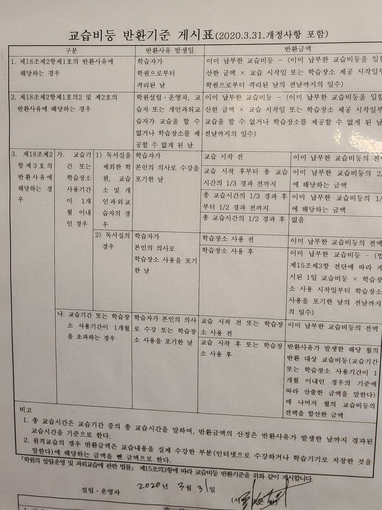독서실 갑작스런 폐업시 환불규정
