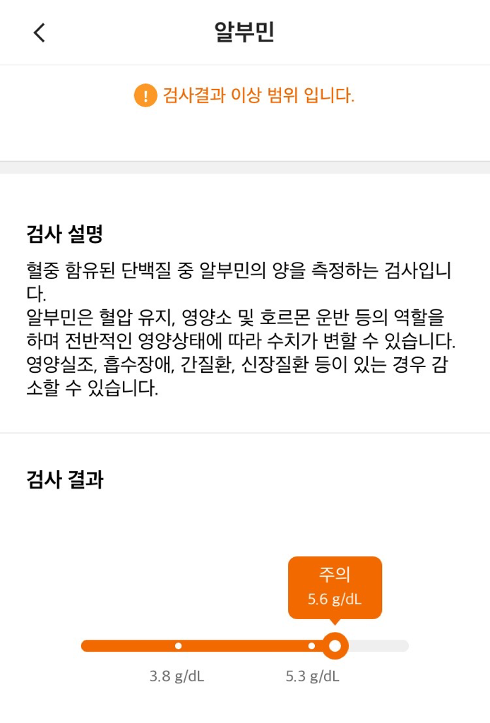 알부민이 5.3 까지 정상인데 5.6이면 조금 높네요?