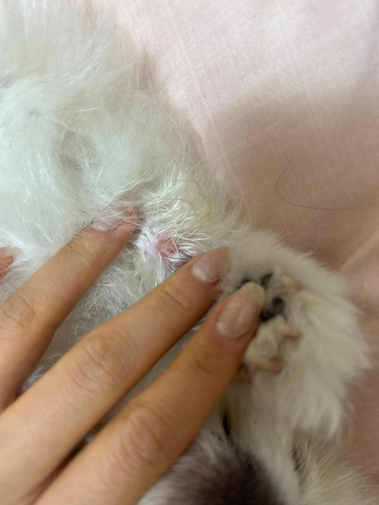 안녕하세요. 유윤영 수의사입니다. 사진 상으로는 발바닥 쪽 보다는 며느리 발톱 쪽 패드이거나 발목 볼록살 쪽인것 같습니다.