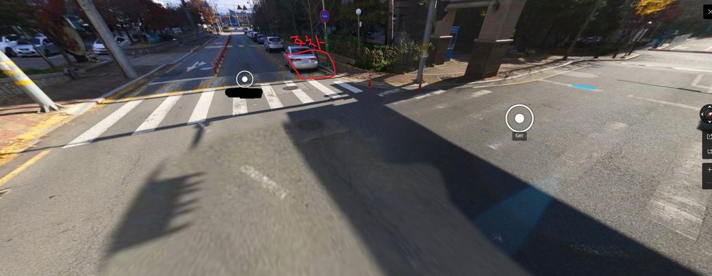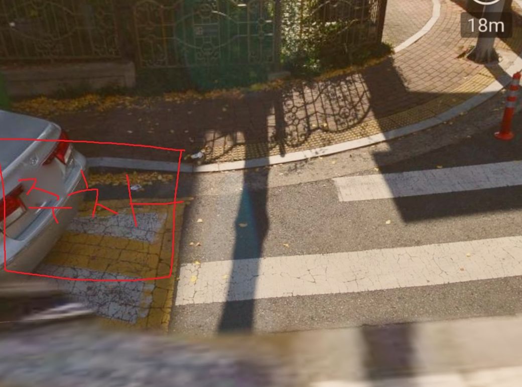 게다가 저의 경우엔 횡단보도가 아닌 근처 주차로 뒷바퀴는 방지턱라인에 있으며