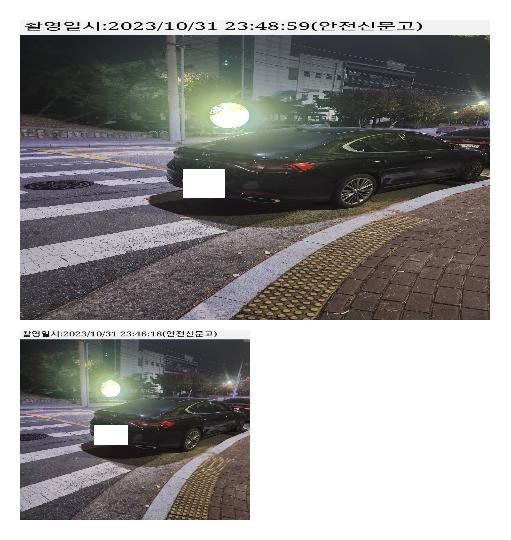 아파트 정문 앞 횡단보도 근처에 밤 11시30분 넘어 주차했고