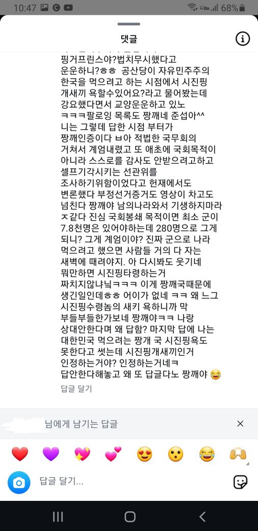 내란, 불법계엄을 옹호하는 사람과 인스타 댓글로 얘기하던 중 인스타에 공개되어 있는 제 실명을 거론하면서 짱깨라고 4번을 언급하였습니다. 특정성, 공연성, 모욕성 성립되어 고소 가능한지 궁금합니다.
