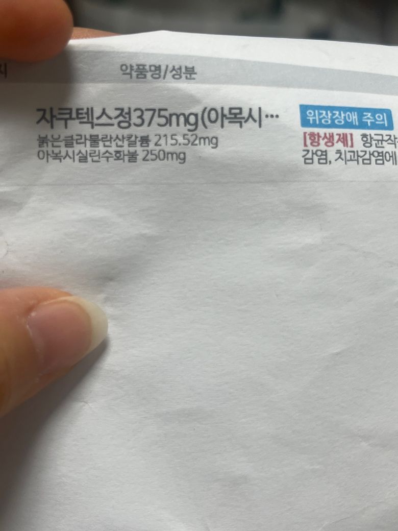 자쿠텍스정은 아목시실린수화물+묽은클라불란산칼륨 성분입니다.