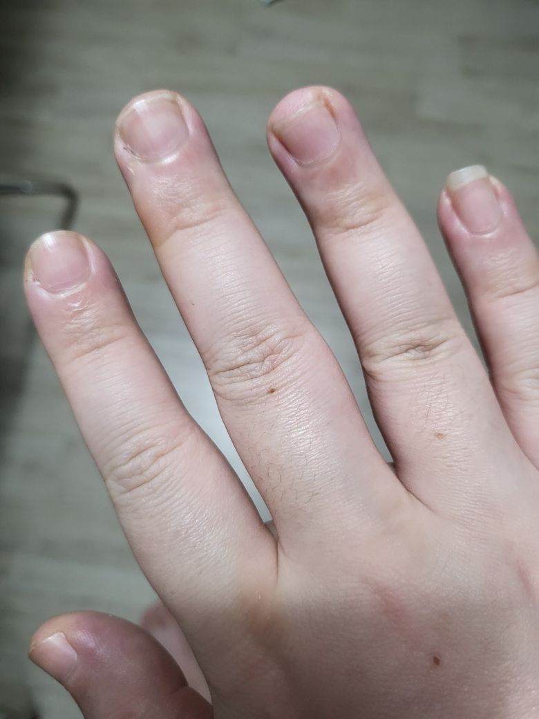 사진으로만 확인하면 곤봉지 같지는 않습니다. 그냥 정상적인 손가락으로 보입니다. 너무 걱정하지 마세요.