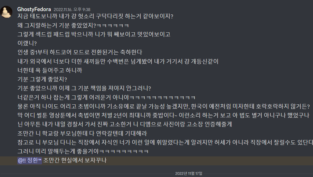 디스코드 채팅방 통매음 가능할까요?