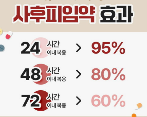 사후피임약은 24시간 이내에 복용하면 피임확률이 매우 높습니다.