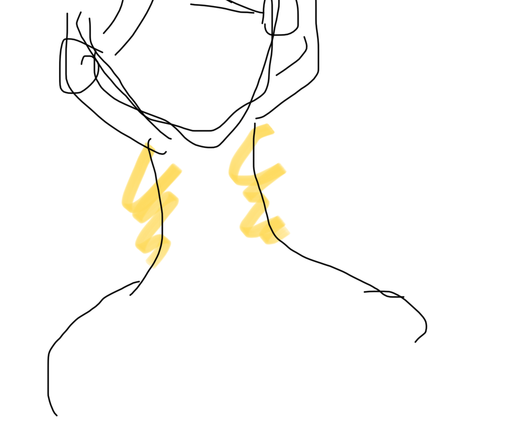 목옆을 따라 표시한 저 부분에 몇일 사이에 몽글몽글한게 만져지고 아프기도 합니다.