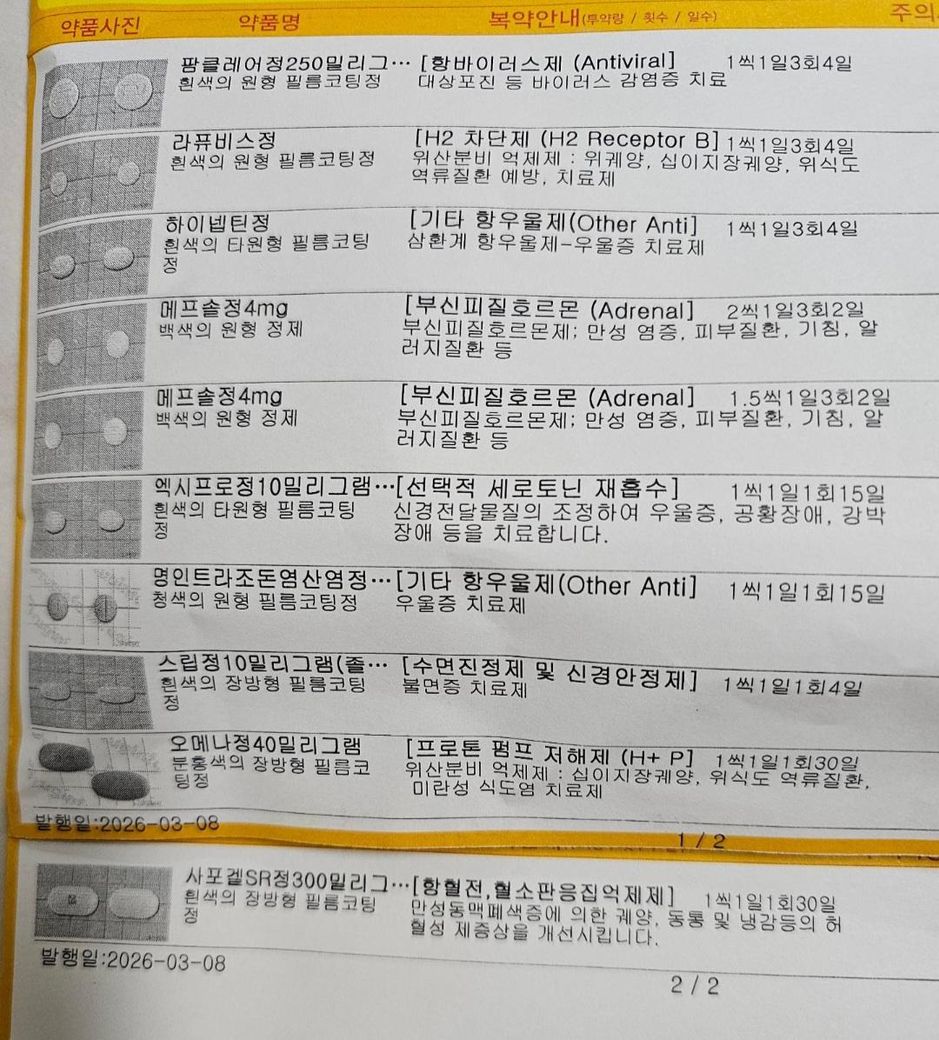이비인후과에서 돌발성난청 진단 받고 처방받은 약인데요. 현재는 약 끊은지 이틀차 입니다.