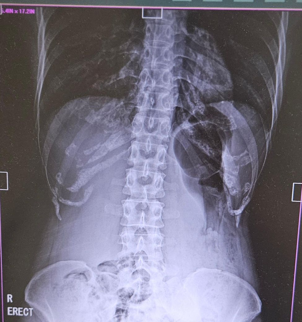 위에 가스가 많이 차보이긴 하네요. 관련 대증치료 받아보시길 바랍니다. 내과 내원하여 진료 보시면 될것으로 사료됩니다.