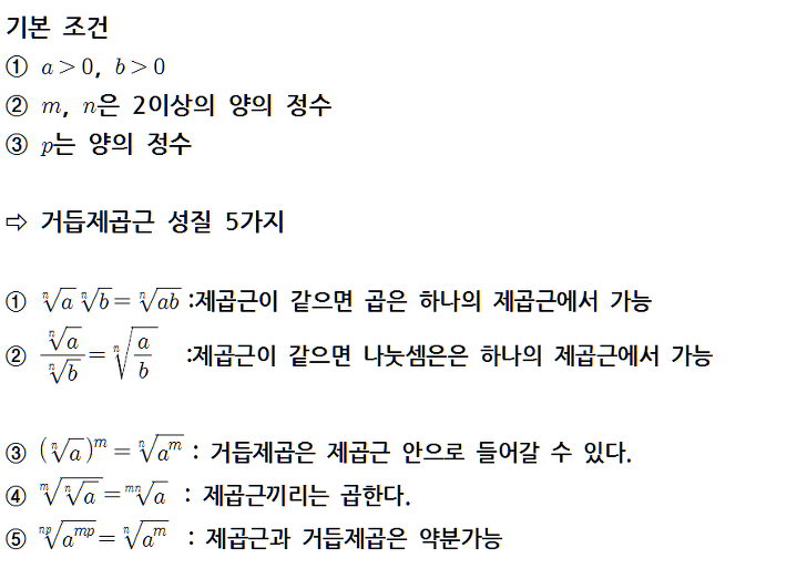 거듭제곱근의 성질의 기본 조건에서 a와 b가 양수이며 m, n은 2이상의 자연수여야 하는 이유가 무엇인지 모르겠어요...ㅠㅠ