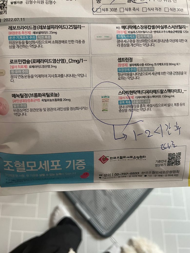 처방 받으신 약에 항생제도 있으니 며칠 복용하시면 금방 괜찮아 질겁니다. 유산균 있으면 유산균 복용을 좀 늘려주세요