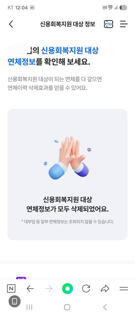 신용사면이 되면 바로 적용이 되는데 카드사에서 이렇게 나오는 것은 아직 반영이 안되었을 수 도 있는 것이지요.