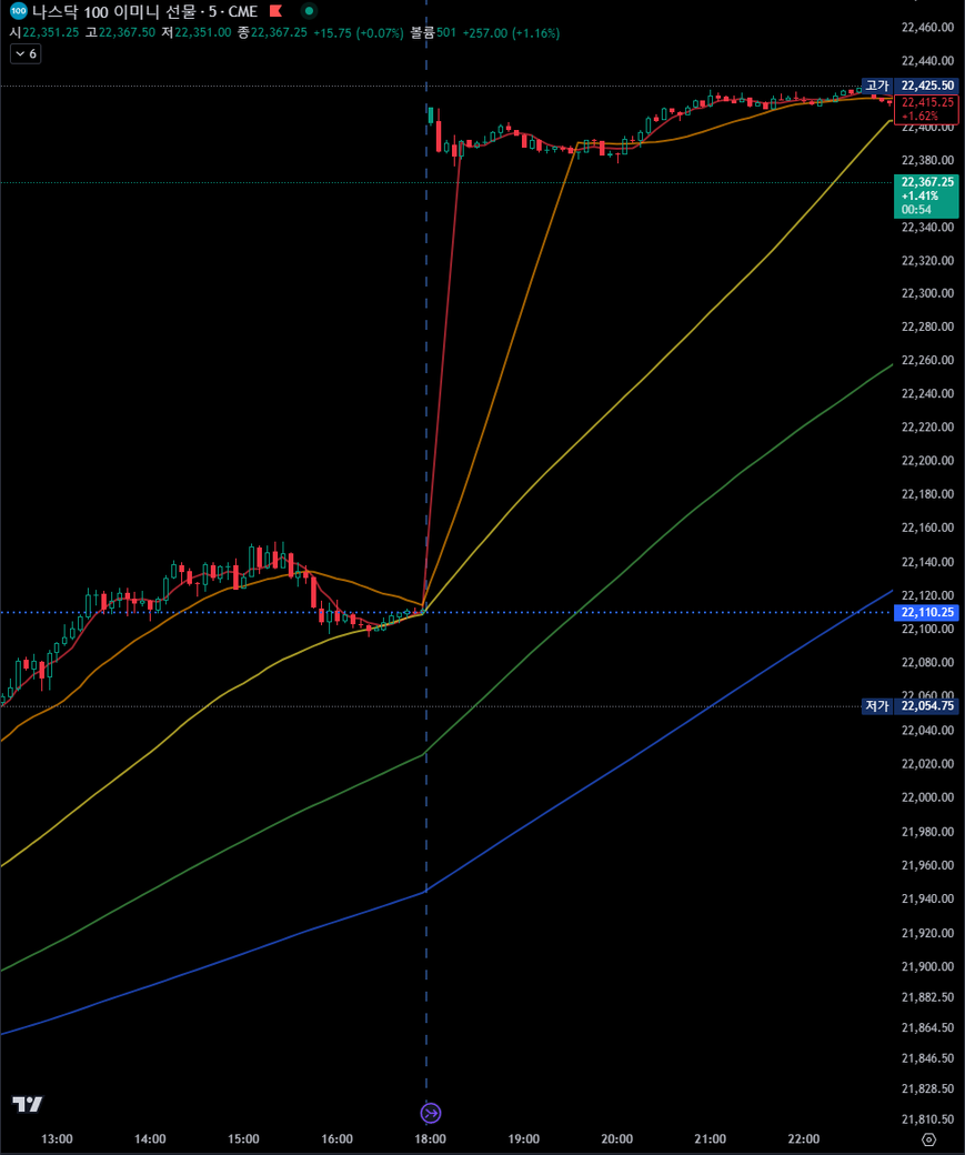 스샷은 24년 12월 16일 21시 30분에 찍은 나스닥 100 선물 차트입니다.
