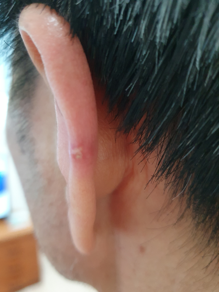 귀 끝에 가려운 부위가 첨부한 사진처럼 되어있습니다. 집에 있는 연고는 세라스톤지크림, 데타손연고, 더모타손엘이엠크림, 비판텐연고 등이 있습니다. 적절한 연고는?