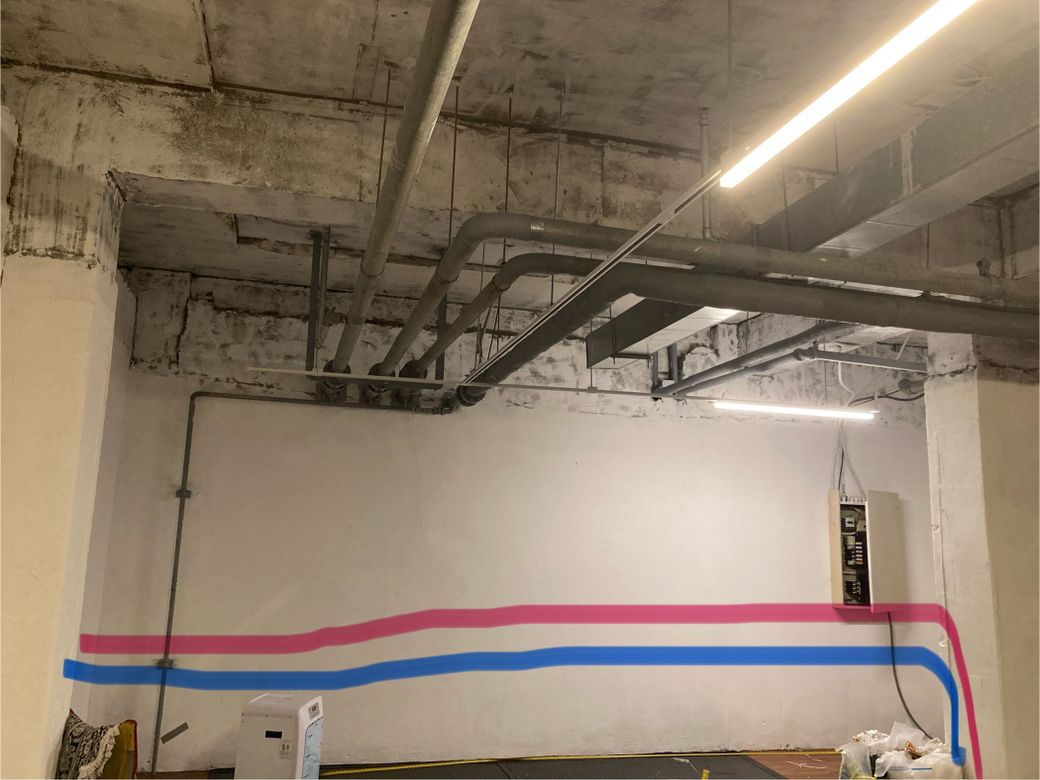 결로가 천장과 바닥 아래쪽에 부분적으로 있습니다.