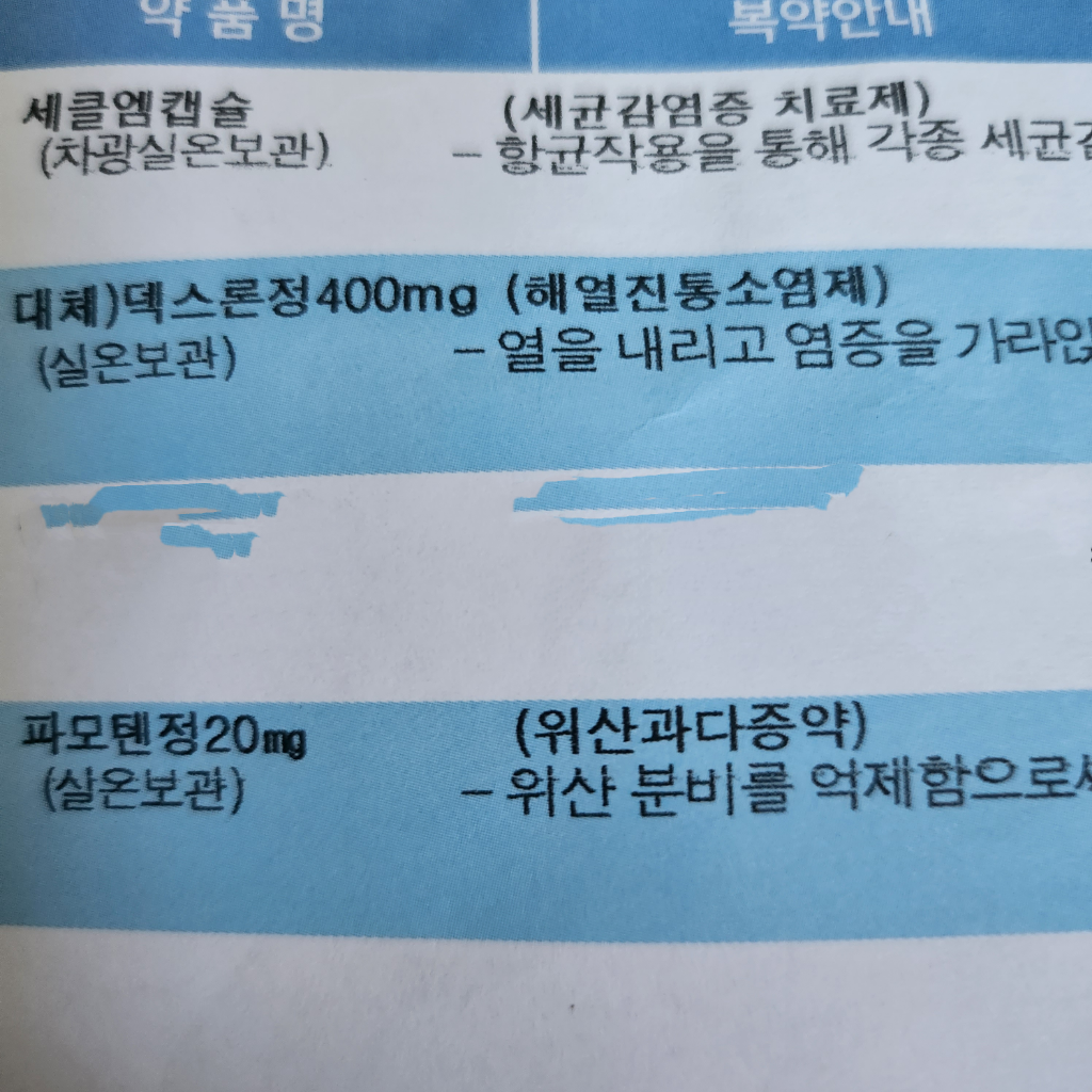 약은 저거 항생제랑 위약 보호제만 먹었어요...